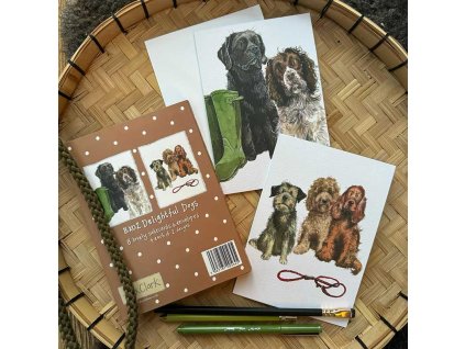 Okouzlující přání do obálky v boxu z tvrdého papíru s nádherným motivem pejsků od anglické malíčky Alex Clark.