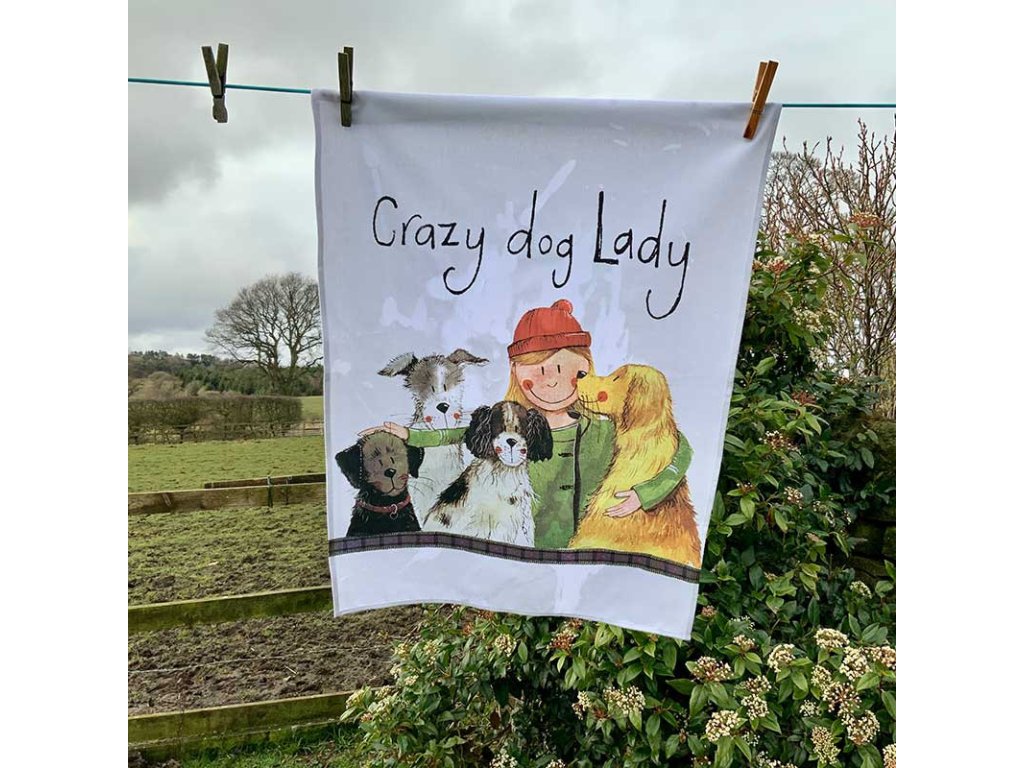 Bavlněná utěrka s motivem milovnice pejsků od anglické malířky Alex Clark.