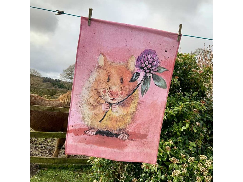 Bavlněná utěrka s motivem křečka Herberta od anglické malířky Alex Clark.