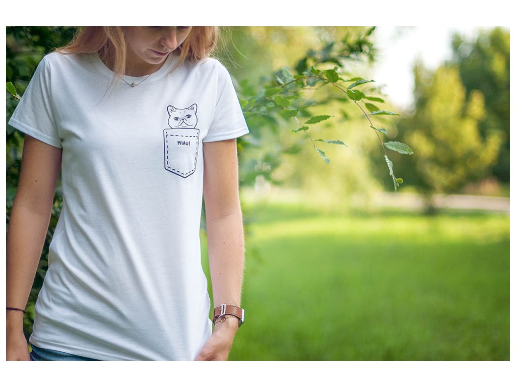 Klasické bavlněné tričko prodlouženého střihu s originálním designem z kolekce Pocket Cats - Miau.
