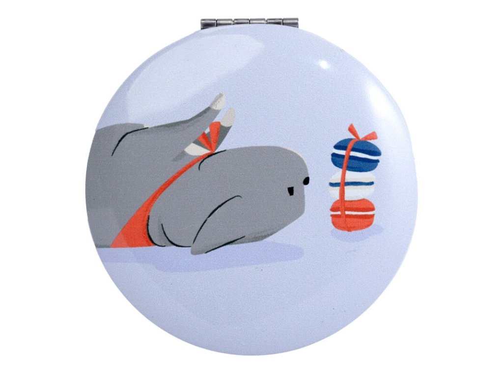 Zrcátko je ve čtyřech barevných variantách - modré, bílé, světle šedé a červené. Žádné variantě samozřejmě nechybí roztomilý motiv s buldočkem Bertrandem ve francouzském stylu. Samozřejmostí jsou dvě zrcátka, jedno klasické a druhé zvětšovací, takže pro vás už nebude problém úprava obočí, přepudrování ani celá make-up rutina.