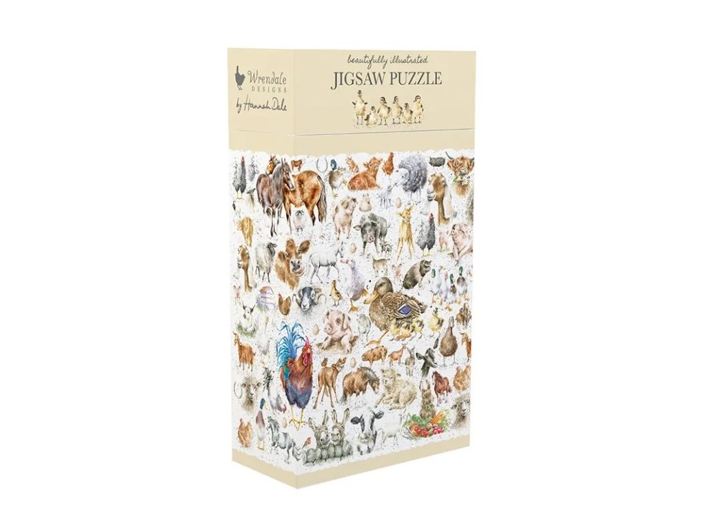 Skládačka puzzle s motivy zvířat na statku poskytne hodiny zábavy celé rodině! Na odhalení čeká více než 100 detailních akvarelových maleb ze štětce Hanny Dale, zakladatelky britské firmy Wrendale Designs. Obrázek lemuje tematická báseň, kterou Hannah napsala speciálně pro tento produkt. Najdete v koláži také schovaného maskota značky ptáčka střízlíka?