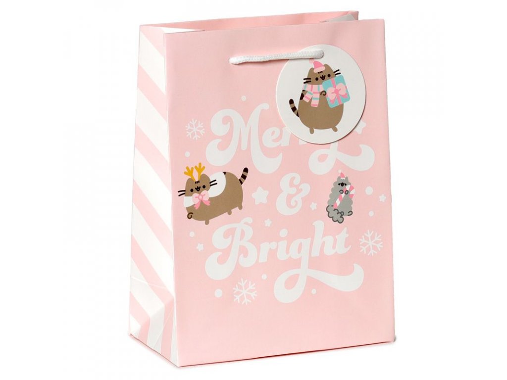 Právě jste našli tu pravou tašku na dárky pro vašeho kočkomila či kočkomilku. Tato růžová dárková taška s roztomilým motivem kočičky Pusheen se sobími parohy vykouzlí úsměv obdarovaného ještě předtím, než se podívá, co ho čeká uvnitř! A pokud váháte, čím ji naplnit, můžete se inspirovat doporučenými produkty níže.